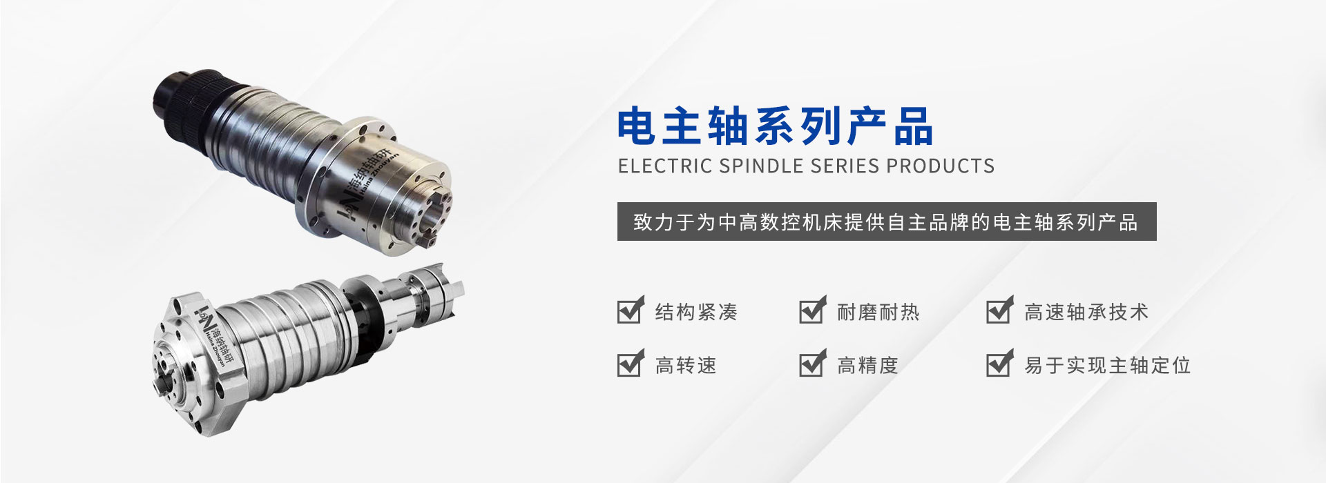 公司致力于為中高數控機床提供自主研發自主品牌的電主軸系列產品,通過堅持不懈的技術攻關和持之以恒的品質管理,嚴格生產工序控制,售前售后的緊密跟蹤逐步形成一套完整成熟的業務體系。為不同類型機床提供主軸設計,現有數控車床主軸單元,數控車床電主軸、加工中 心電主軸及直聯機械主軸,走心車床電主軸,機械主軸,磨床電主軸,光伏主軸等系列主軸產品。